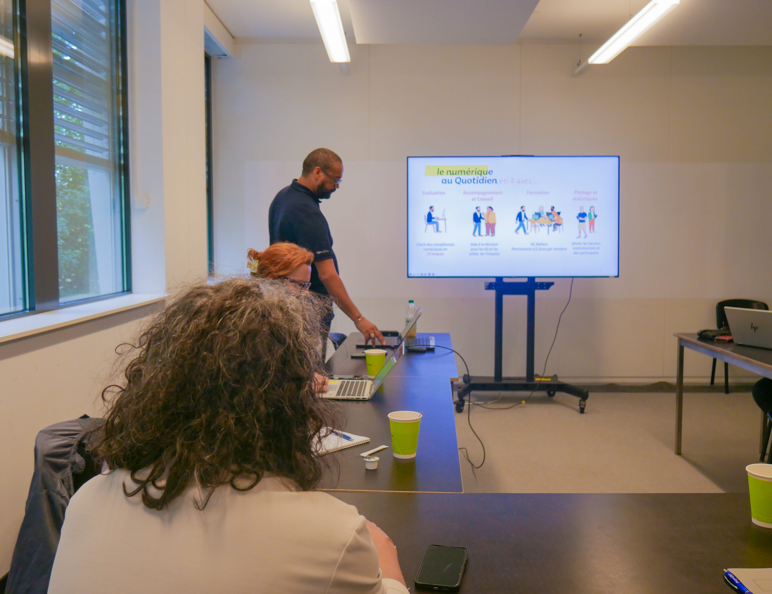 Dans le cadre du « Numérique au quotidien », les participant·e·s abordent des situations très concrètes pour gagner en autonomie. Ils et elles commencent par se familiariser avec l’ordinateur, la navigation sur Internet et les bases du numérique, puis apprennent à créer et utiliser une adresse e-mail, comprendre un QR code, ou encore participer à une visioconférence. Le programme propose aussi des ateliers pratiques autour du smartphone, par exemple pour scanner des documents, ainsi que des conseils pour adopter les bons réflexes de sécurité en ligne.